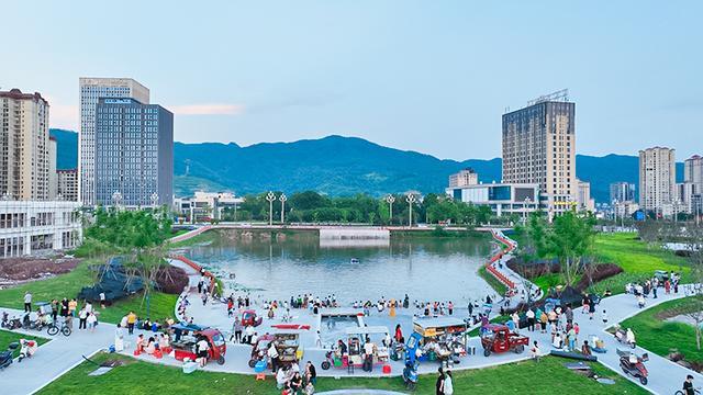 近年来,前锋区大力实施城市“小城大美”宜居宜游城市提质行动。高标准建设“芦溪河岸·十里画廊”,布局亲水平台、滨水漫步道、慢跑径及休憩驿站,配套建设集观光、休闲、轻餐饮于一体的城景休闲基地。同步推进打纸岩公园绿化美化与观景设施升级,优化海绵运动广场的运动设施与儿童活动空间,形成功能复合的城市休闲网络。引进高品质大型酒店,提升高端住宿接待能力。在海绵运动广场、城市中央公园、打纸岩公园等公园节点,植入代市舞龙和川工木雕展示、桂兴唢呐制作体验、双竹连响健身操表演等文娱活动,制作“早晨练、午休闲、夜体验”城市文旅地图。